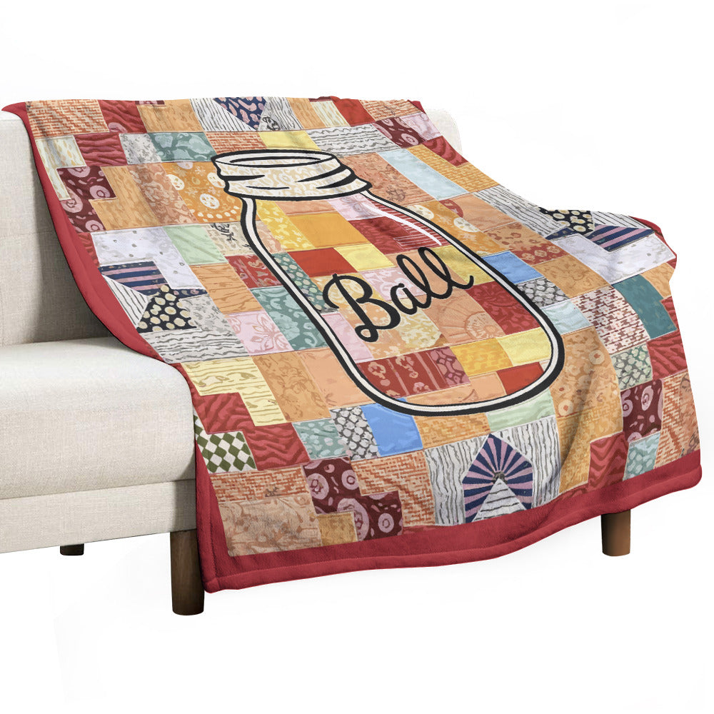 Ball Jar Faux Quilt Design Super Soft Blanket 50 x 60 ( Made in USA)